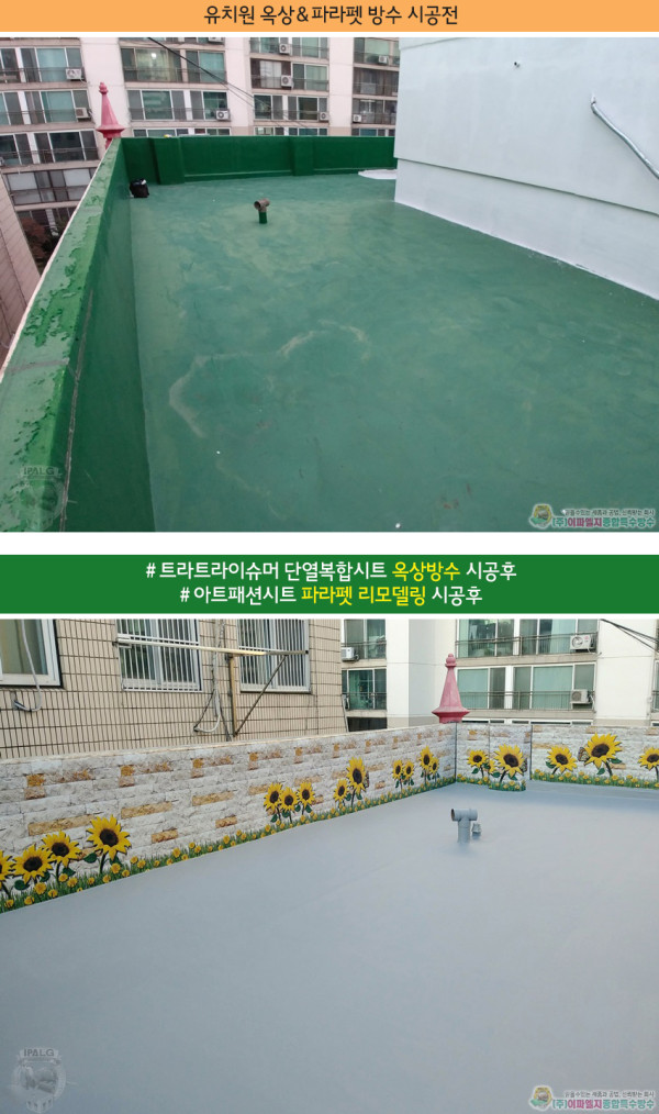 ▲ 유치원 맞춤디자인 옥상방수 시공후